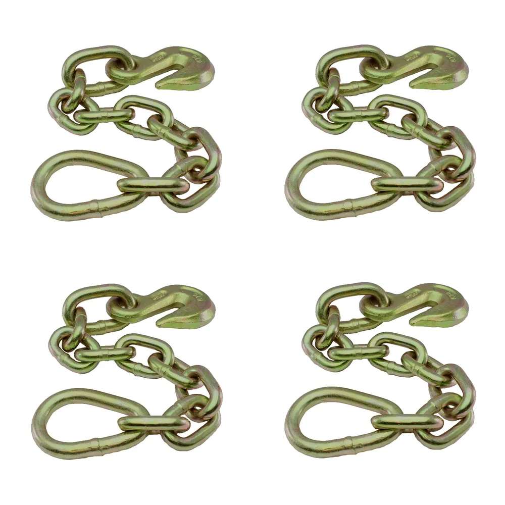 Wrapping your tie-down strap around a stake pocket or any surface that risks cutting your tie down strap is asking for trouble. Fortunately, chain extensions are an easy fix. Simply hook the extension onto your tie-down hook when securing a load on a trailer with rub rails, stake pockets, or when anchor points are not available.