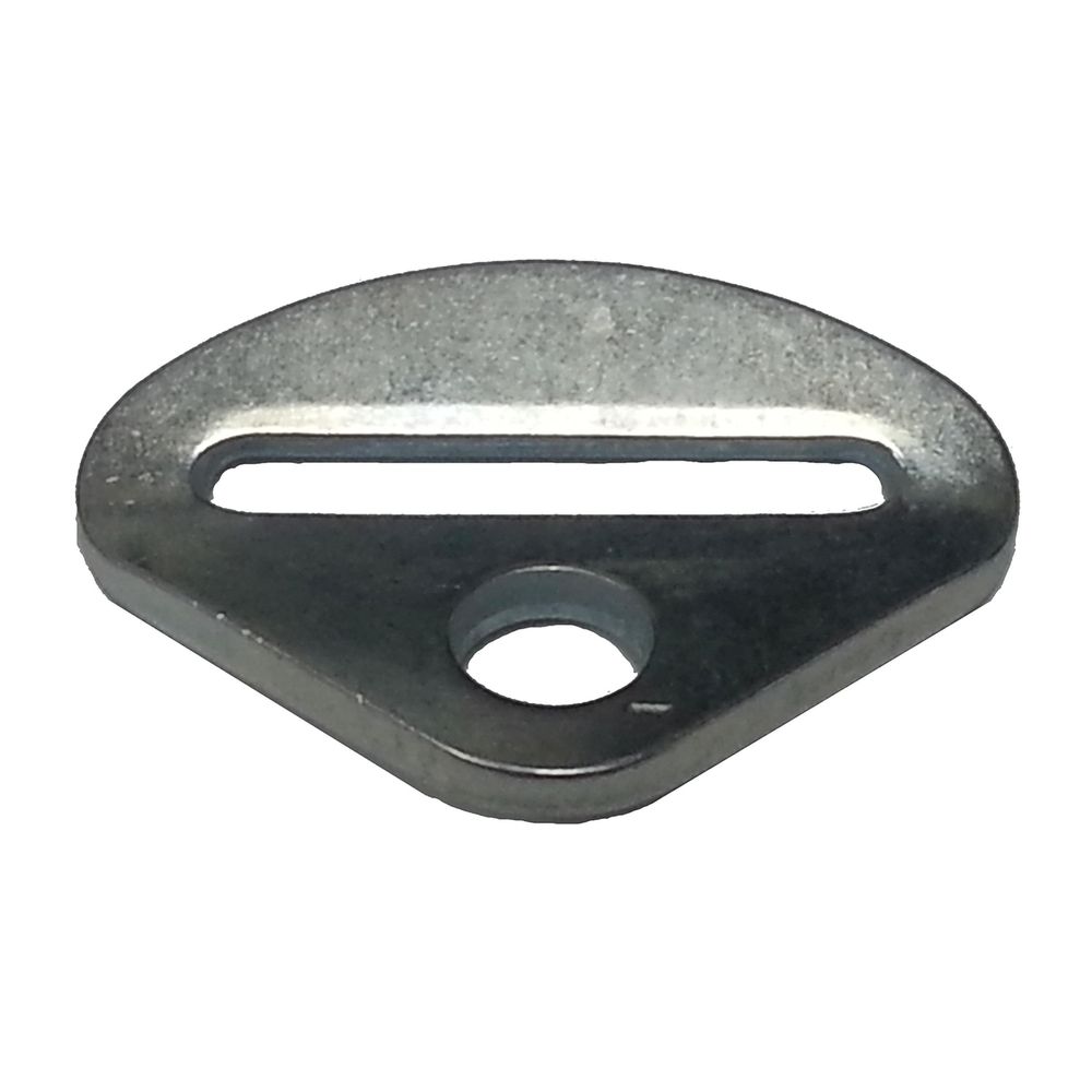 This 2" strap mounting bracket has a 50-degree bend and a 1/2" hole.