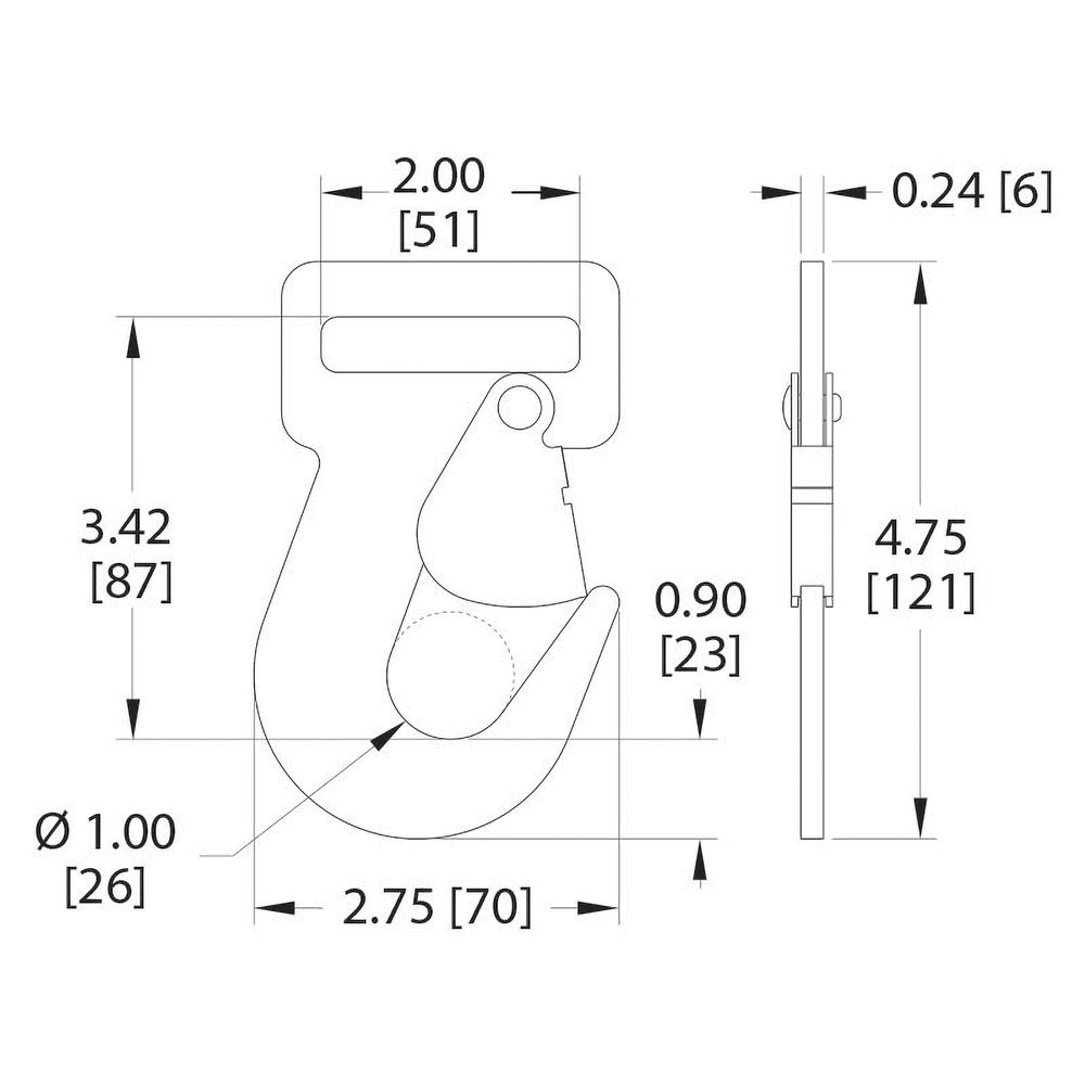 This 2" flat snap hook is commonly used in auto hauling applications.