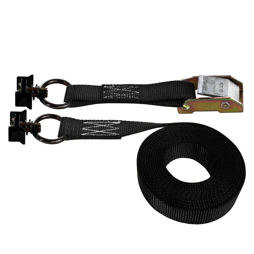These heavy duty, 1" cam buckle L-track straps are built to last with black #32401B L-track fittings on both ends. We use the industry's best cam buckle and extra-thick 4,000 lb. polyester webbing.