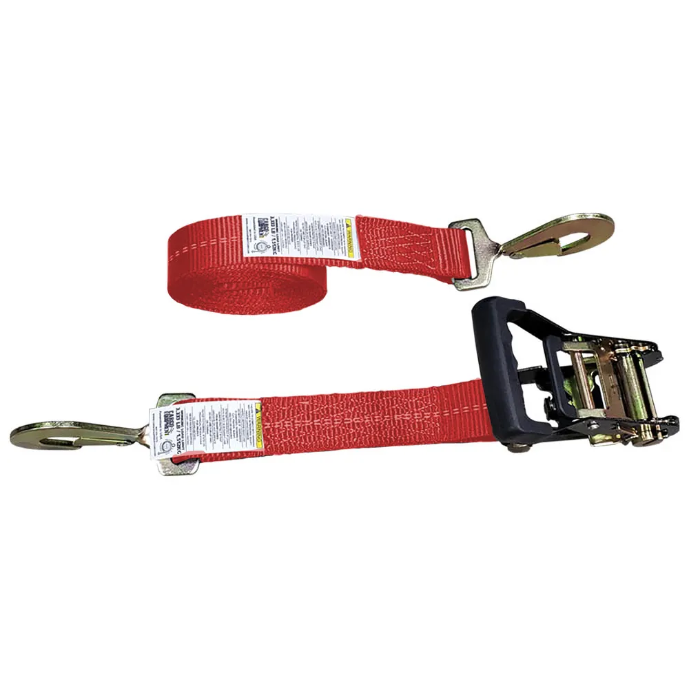 2" x 12' Black Ratchet Strap with Twisted Snap Hooks - Red