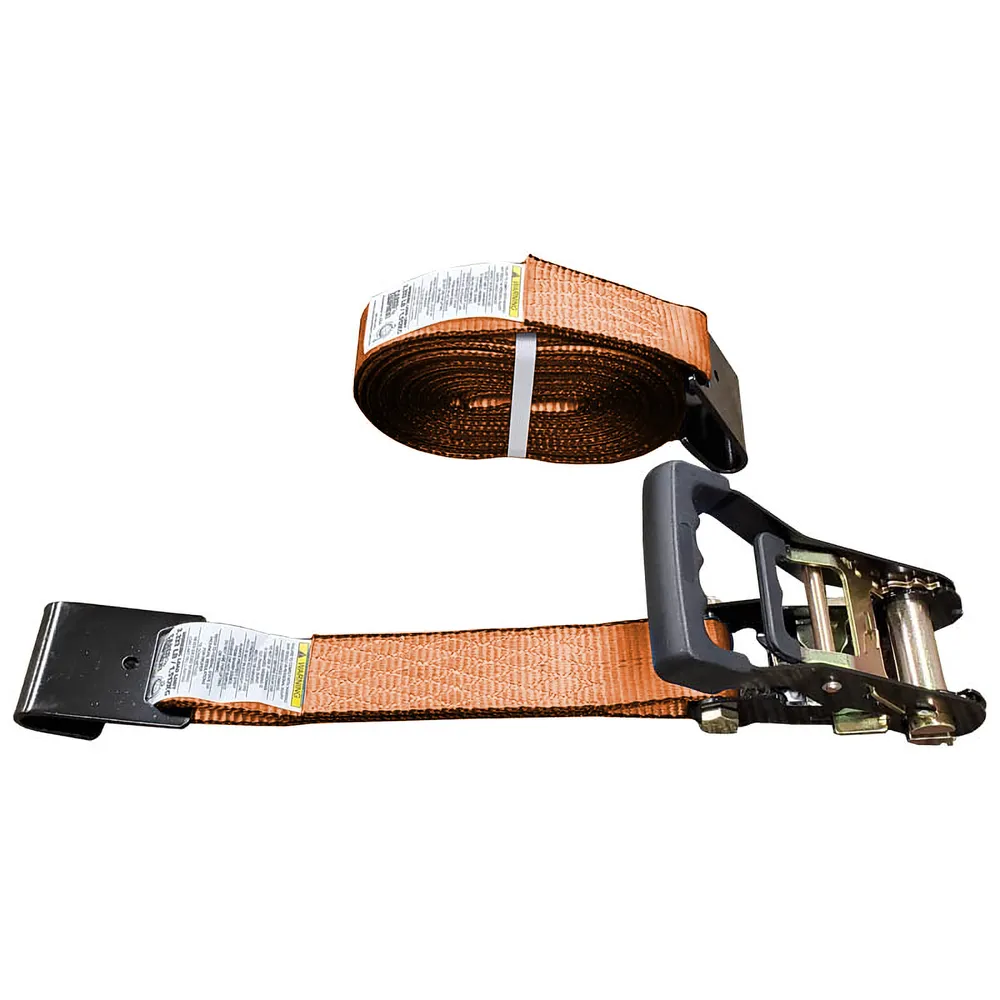 2" x 15' Black Ratchet Strap with Flat Hooks - Orange