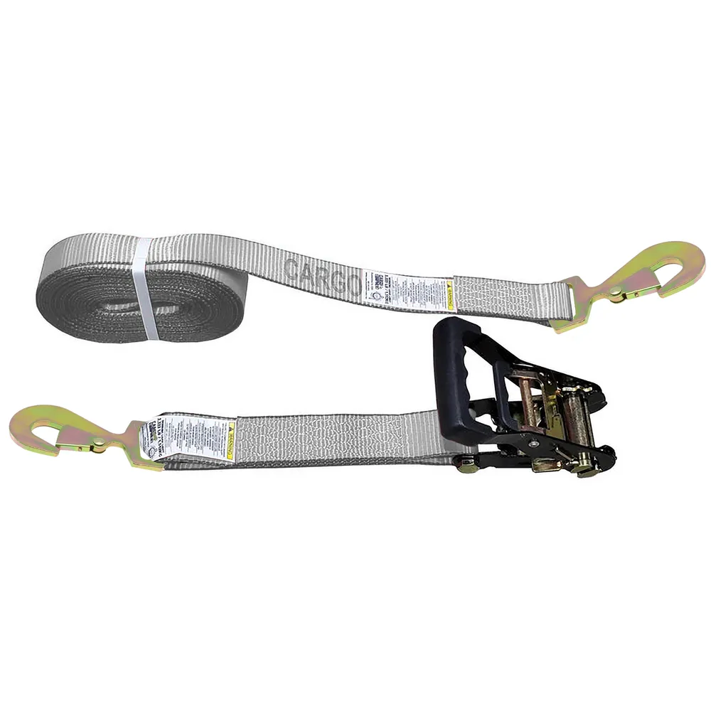 2" x 15' Black Ratchet Strap with Flat Snap Hooks - Gray