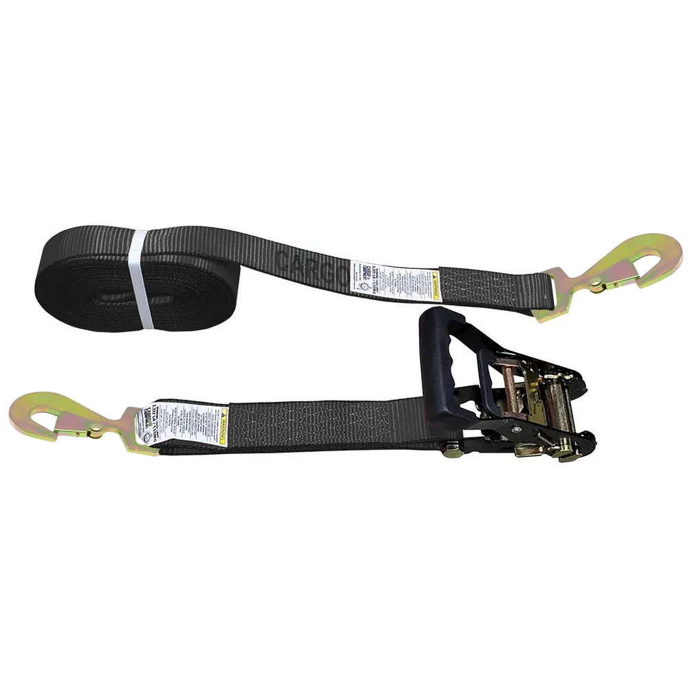 2" x 18' Black Ratchet Strap with Flat Snap Hooks - Black