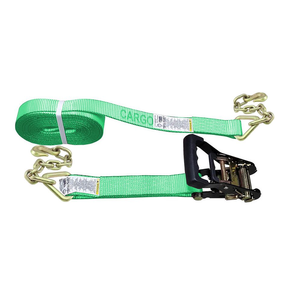 2" x 24' Black Ratchet Strap with Chain Anchors - High Visibility Green