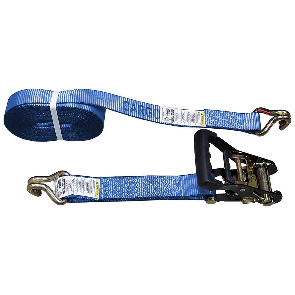 2" x 24' Black Ratchet Strap with Wire Hooks - Blue