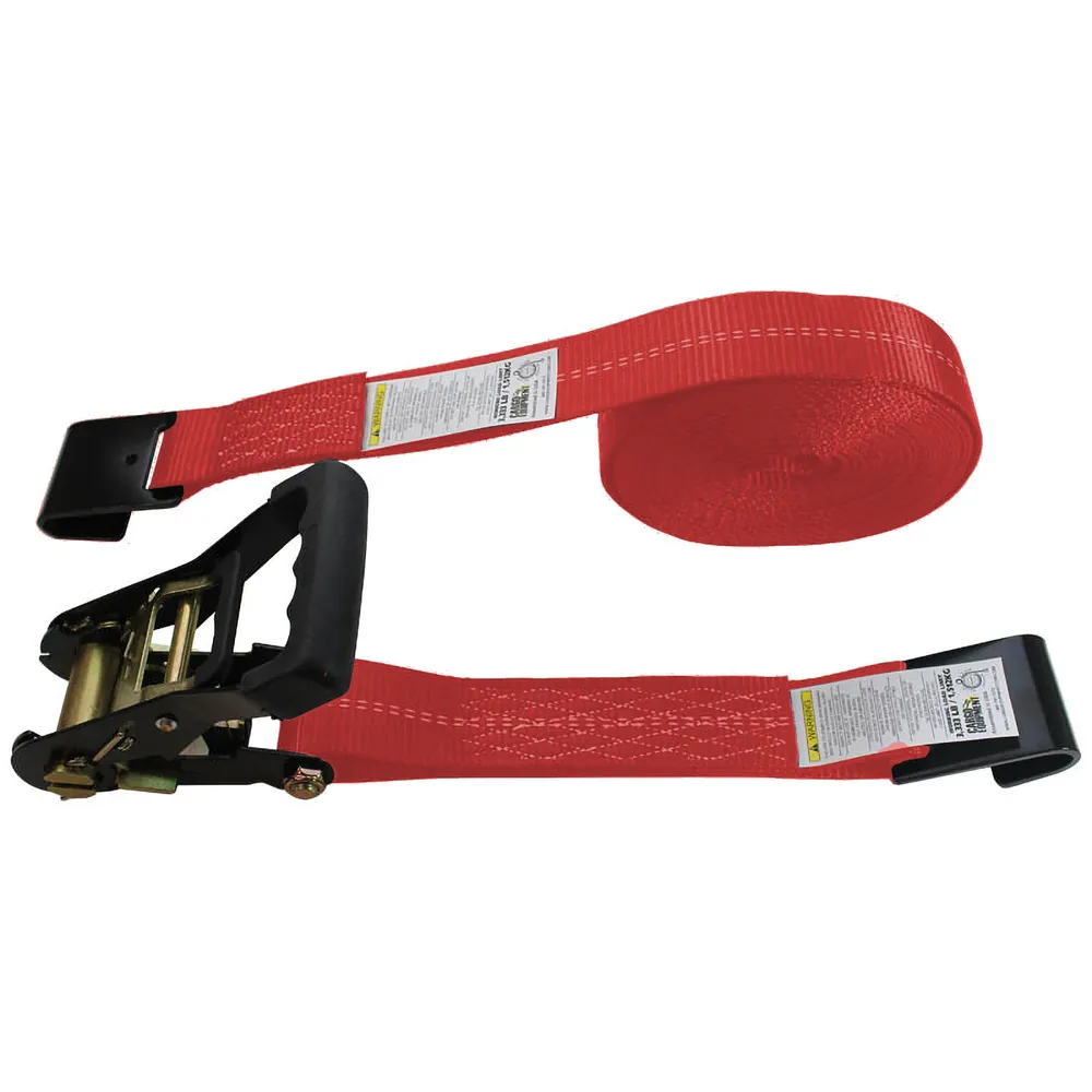 2" x 30' Ratchet Straps with Wire Hooks, Storage Bag, 6 Pack - Red