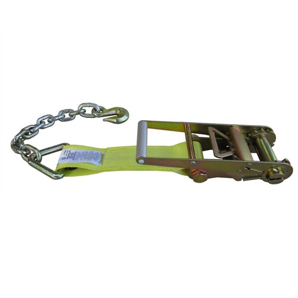 3" replacement fixed ends are a standard 12 inches in length and feature our #806 ratchet. Additional lengths available upon request. Working Load Limit: 5,400 lbs; breaking strength: 16,200 lbs. Custom stenciling is available in black ink on all webbing colors except black. Add your company name, logo, phone number, or address to help prevent loss. Stenciling provides a great marketing tool too!