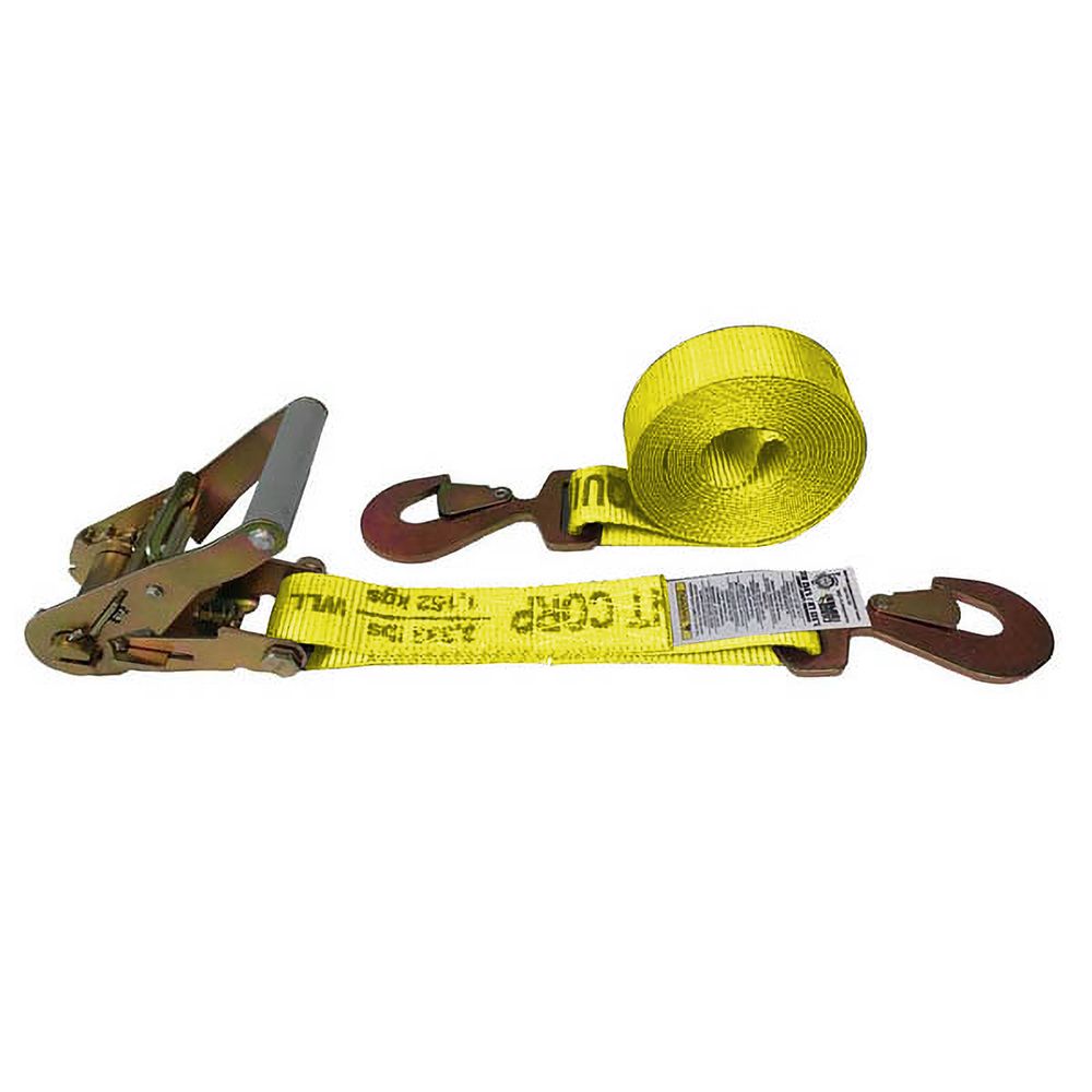 2" x 20' Ratchet Strap with Flat Snap Hooks - Yellow