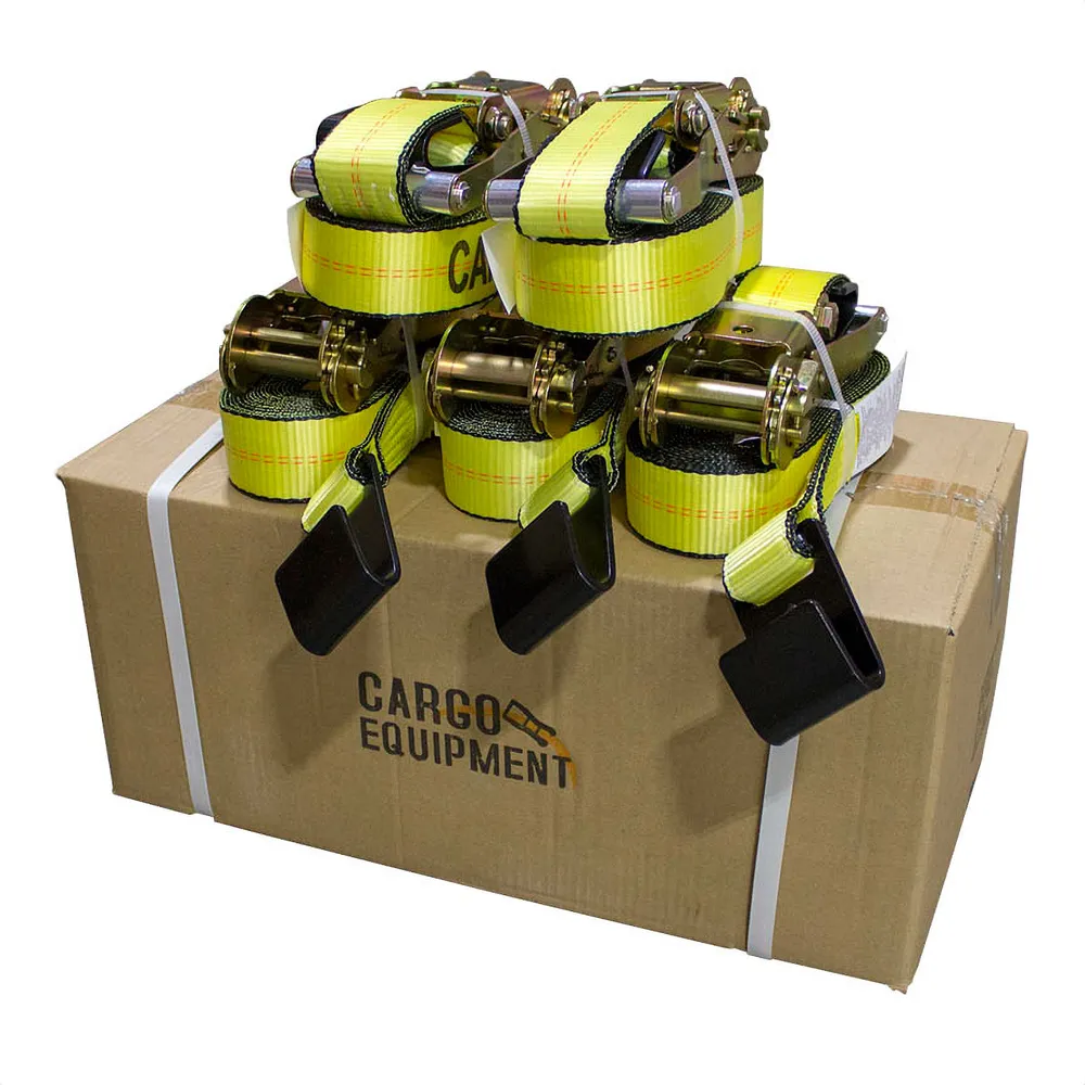 2" x 27' Ratchet Strap with Flat Hooks - Yellow - Box of 10