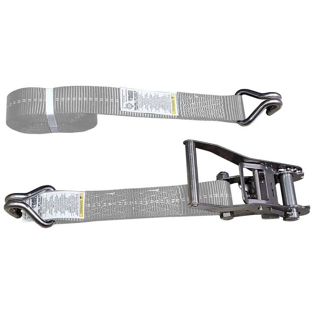 2" x 20' Stainless Steel Ratchet Strap with Stainless Steel Wire Hook - Gray