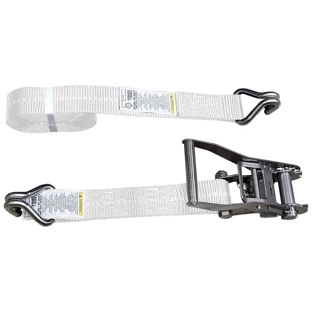 2" x 35' Stainless Steel Ratchet Strap with Stainless Steel Wire Hook - White