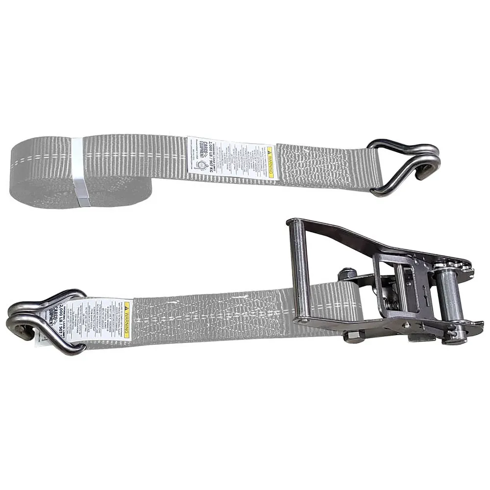 2" x 45' Stainless Steel Ratchet Strap with Stainless Steel Wire Hook - Gray