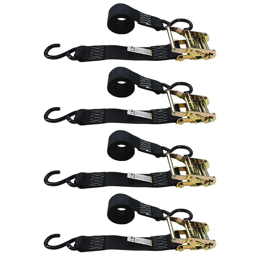 2" x 6' Ratchet Strap w/Vinyl-Coated S-Hooks, 4-Pack - Black