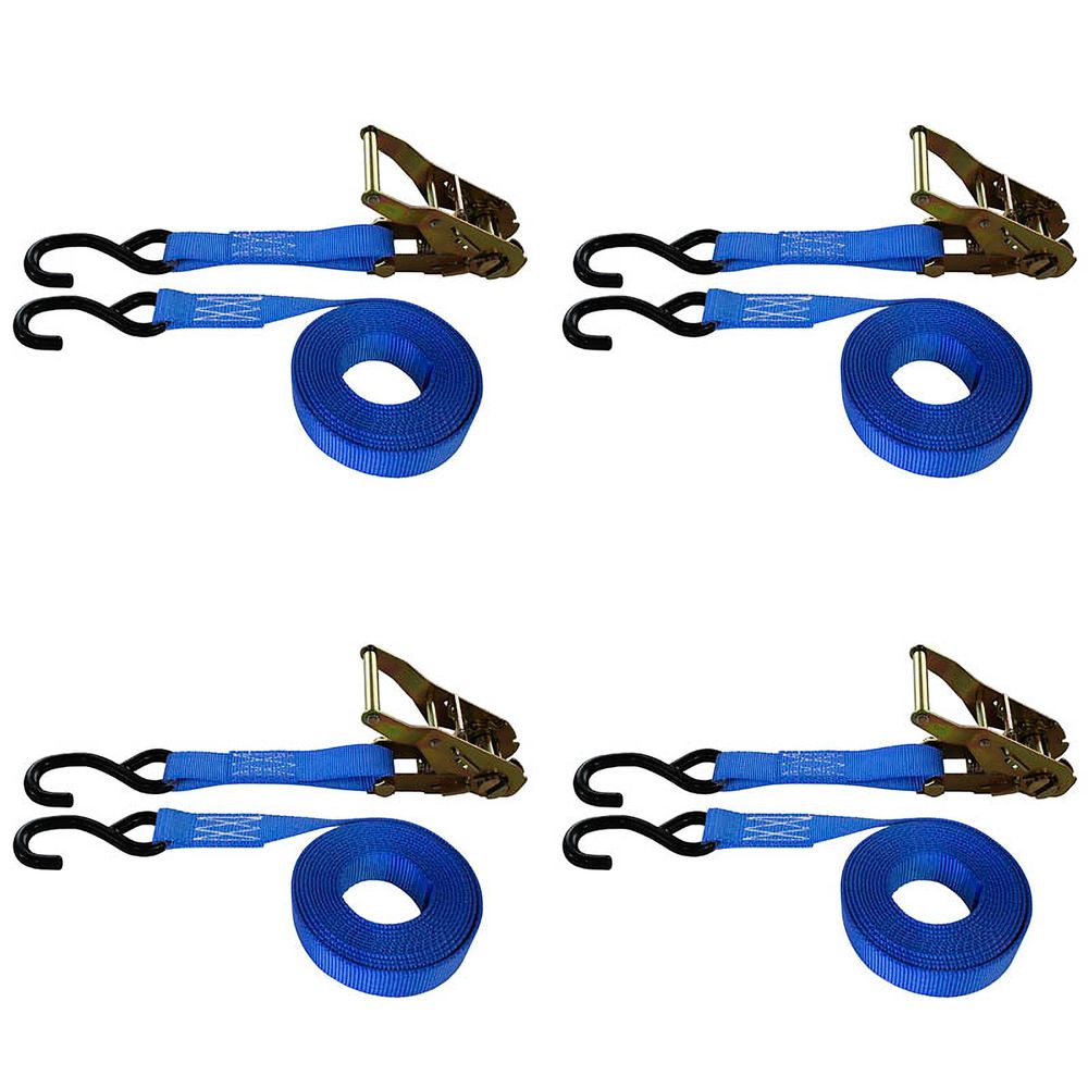 1" x 8' Standard Ratchet Strap With S-Hooks, 4-Pack - Blue