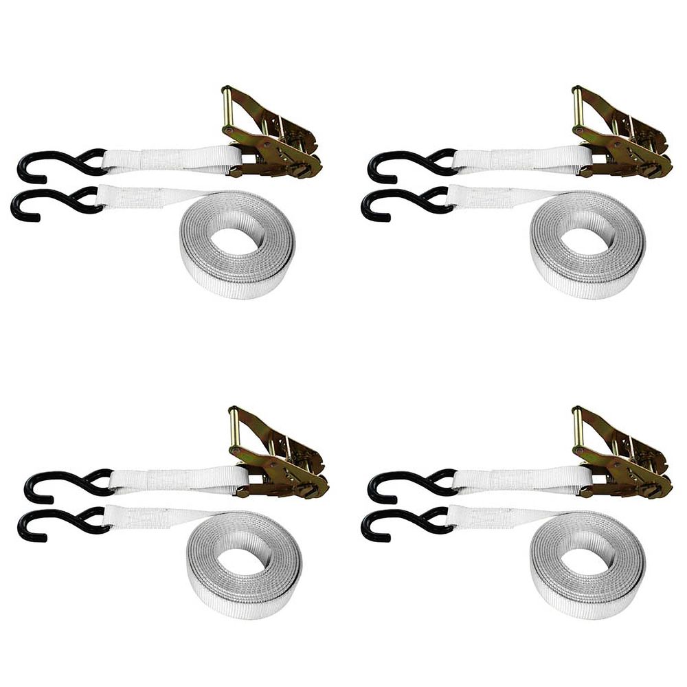 1" x 10' Standard Ratchet Strap With S-Hooks, 4-Pack - White