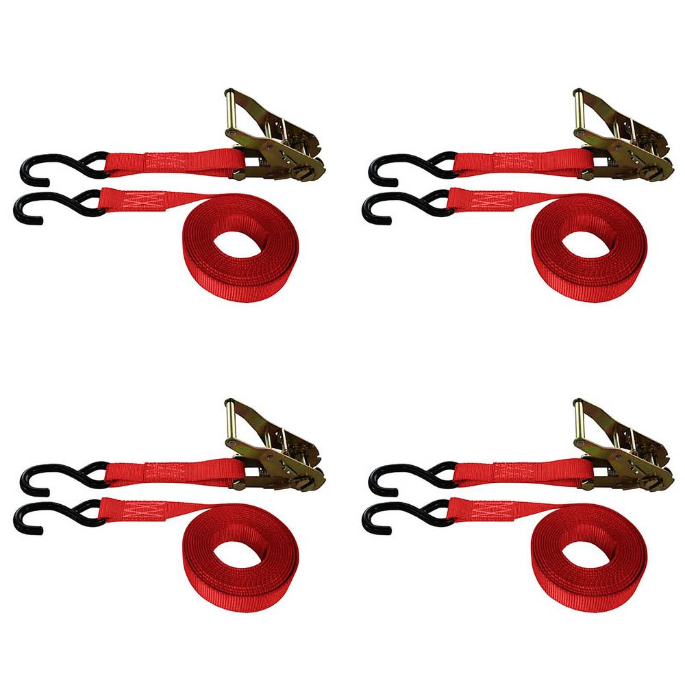 1" x 10' Standard Ratchet Strap With S-Hooks, 4-Pack - Red