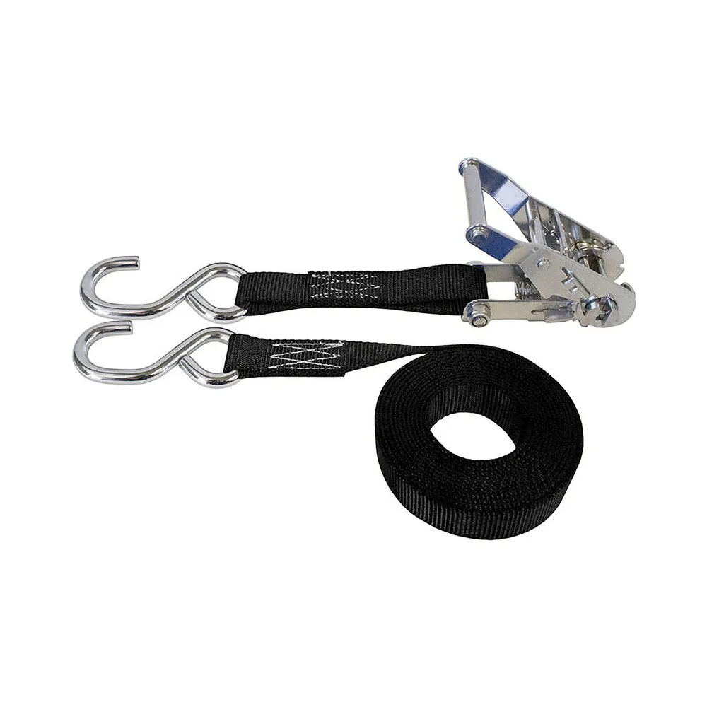 The 1" ratchet straps feature stainless steel S-hooks on both ends and a stainless steel 812 ratchet. Prolong the life of your strap in wet environments, including saltwater! The stainless steel S-hooks easily grab and hold tie-down points. The strap uses extra-thick polyester webbing.
