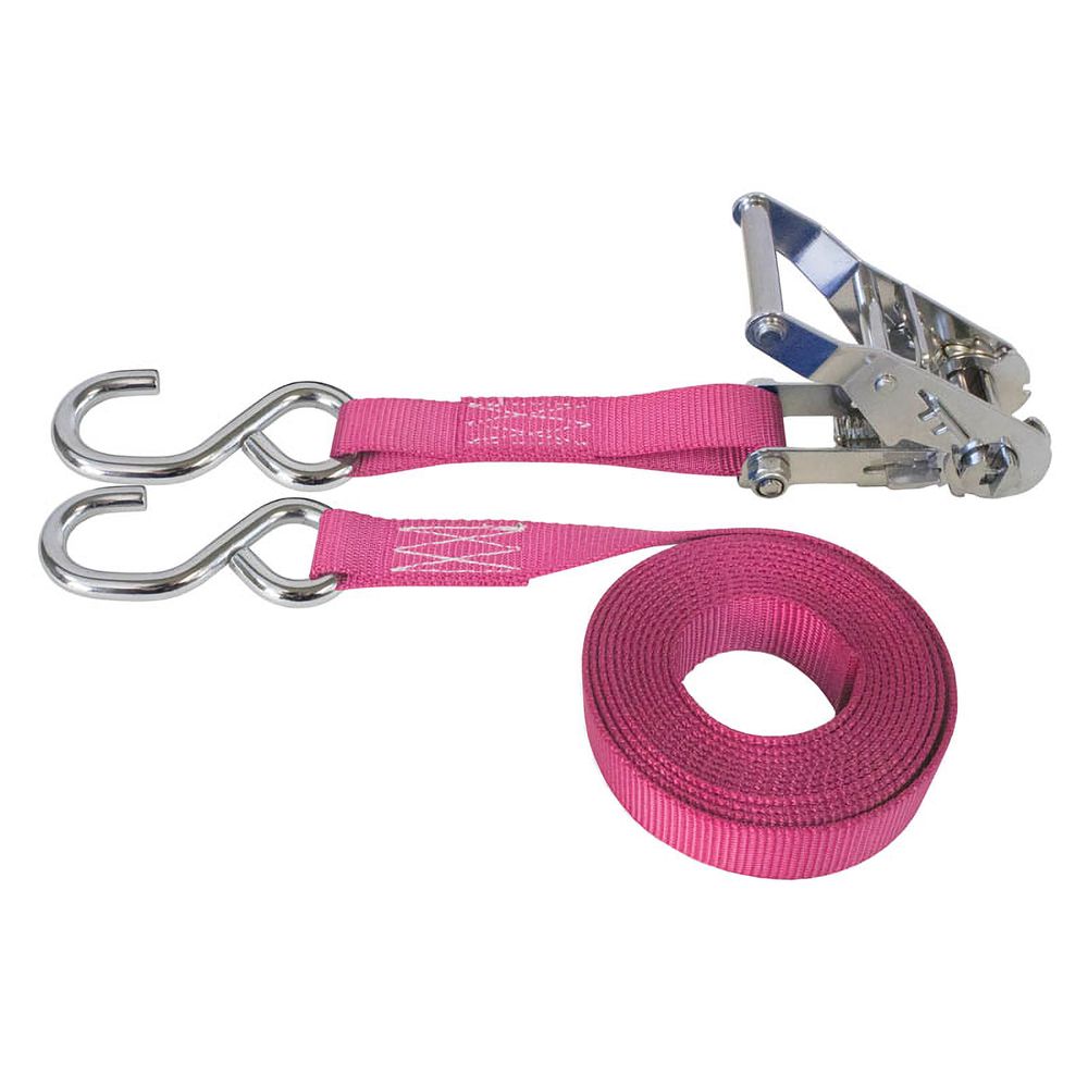 1" x 8' Stainless Steel Ratchet Strap With Stainless Steel S-Hooks - Pink