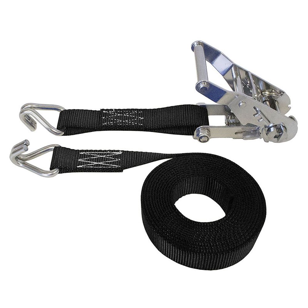 The 1" ratchet straps feature stainless steel wire hooks on both ends and a stainless steel 812 ratchet. Prolong the life of your strap in wet environments, including saltwater! The stainless steel wire hooks easily grab and hold tie-down points. The strap uses extra-thick polyester webbing.