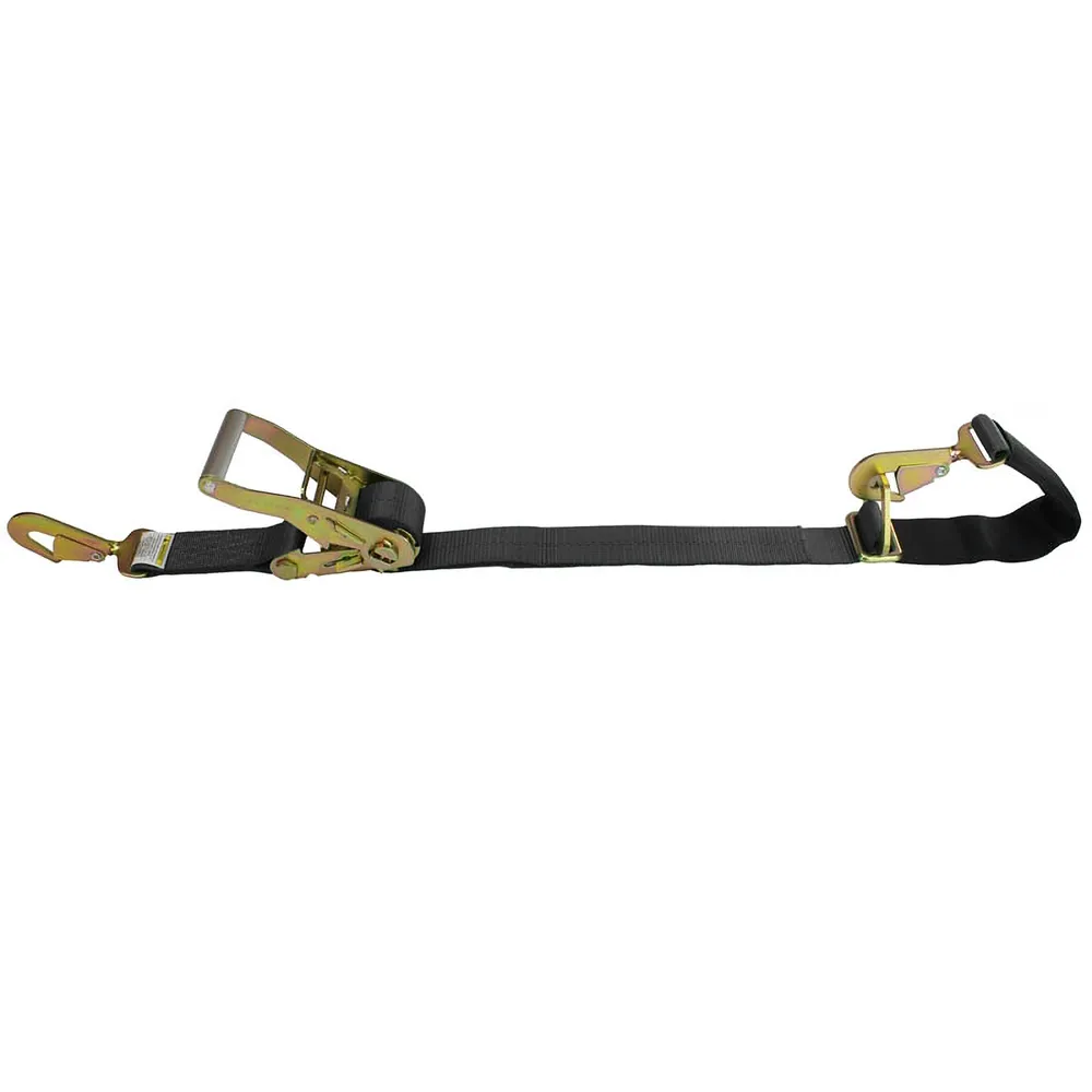 Combination ratchet strap and axle strap makes it easy to secure your vehicle. Remember: use a minimum of four tie-down points when securing a vehicle. This assembly is rated at 10,000 lbs with a safe working load limit of 3,333 lbs. As a certified testing facility, our straps are tested for durability and strength. Uses compact and easy-to-operate wide handle ratchet, Includes two twisted snap hooks, Attach snap hook to sewn-in 2" delta ring, Protective sleeve around axle strap portion of assembly protects strap from wear, contact us if you need other lengths.