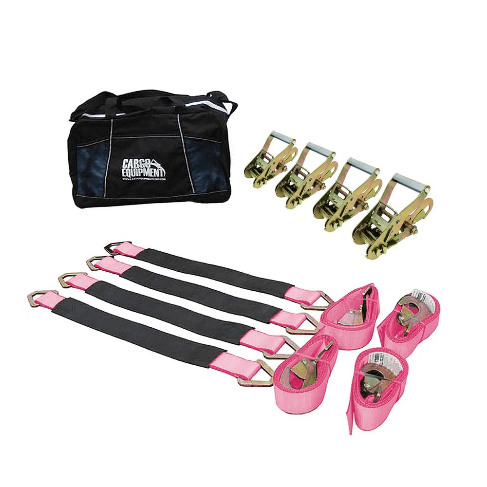 2" x 6' 10HK Direct Hook Ratchet Strap & 36" Axle Strap Pack, Twisted Snap Hooks, Storage Bag - Pink