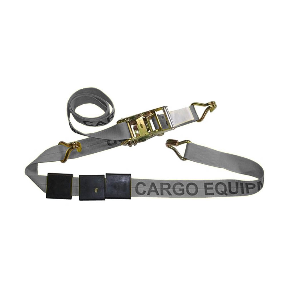 This 2" auto strap assembly uses a #802 standard ratchet with a 6" fixed end. The strap has three #1007 wire hooks, one of which is floating to allow for proper adjustment.