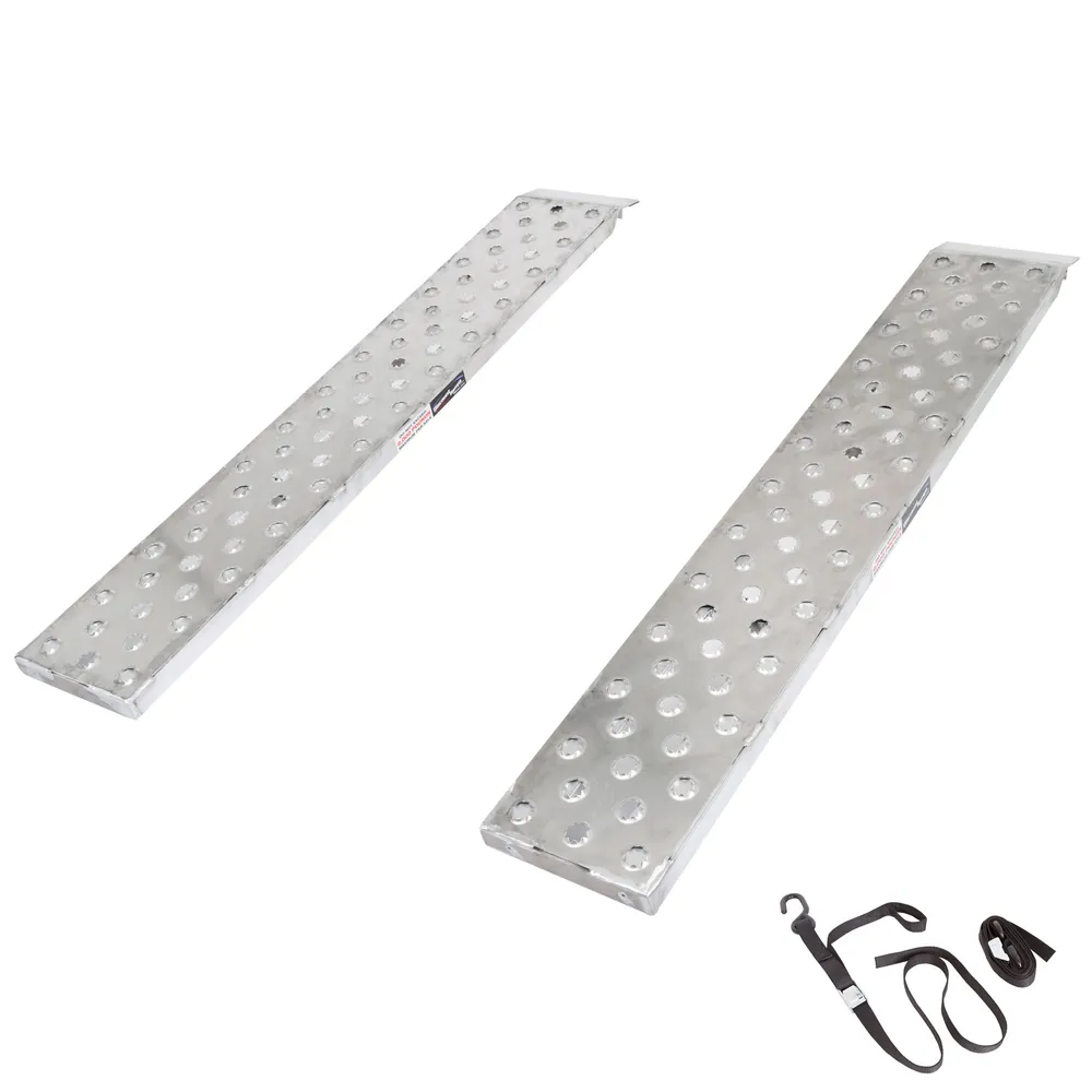 Load and haul cars, trucks and equipment onto trailers with this pair of lightweight 6' L aluminum truck trailer ramps that feature a hook end and a stub foot with EZ punch plate surface traction.