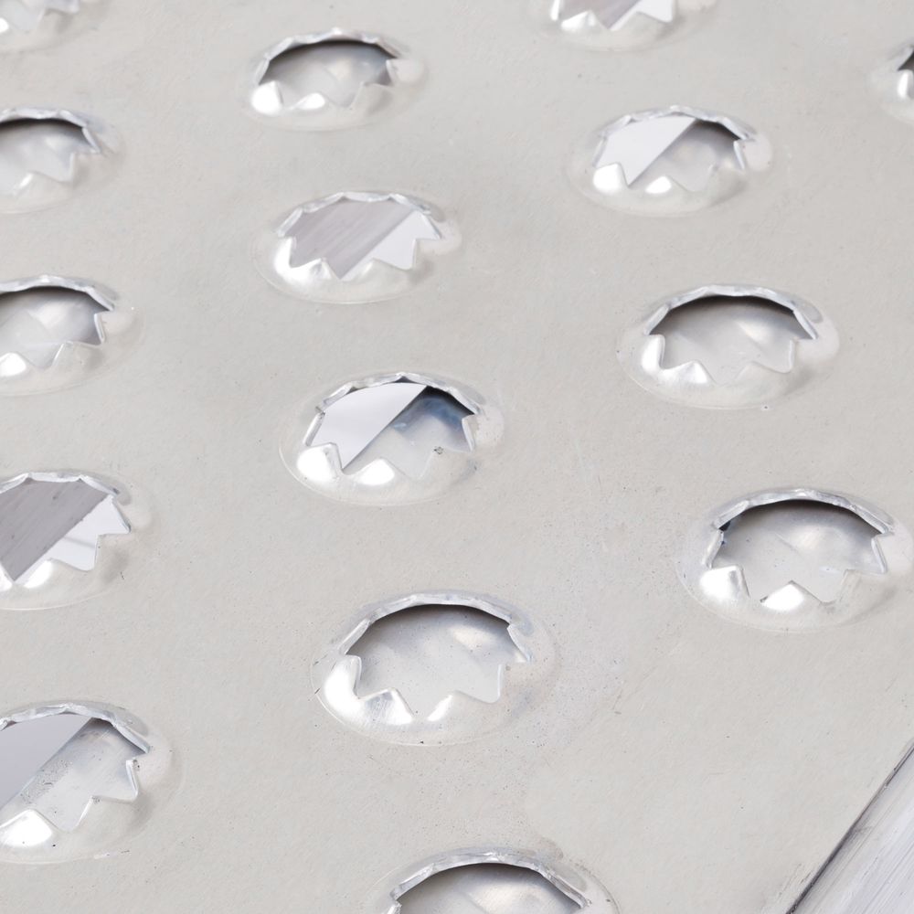 The unique punched surface features smoothed serrations that grip tires while allowing rain, mud and ice to pass through.