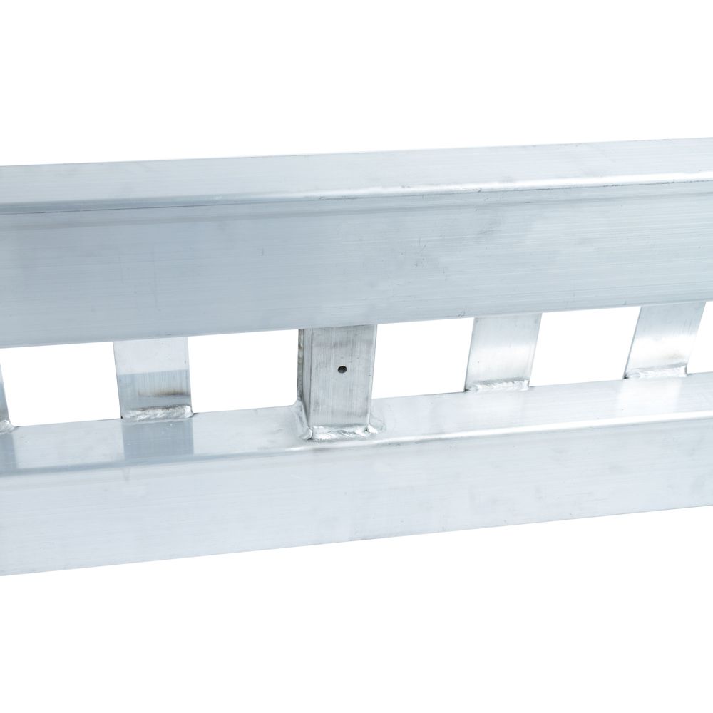 Load and haul cars, trucks and equipment onto trailers with this pair of lightweight 12' L aluminum smart car truck trailer ramps that feature a plate end and a stub foot with serrated rung traction.