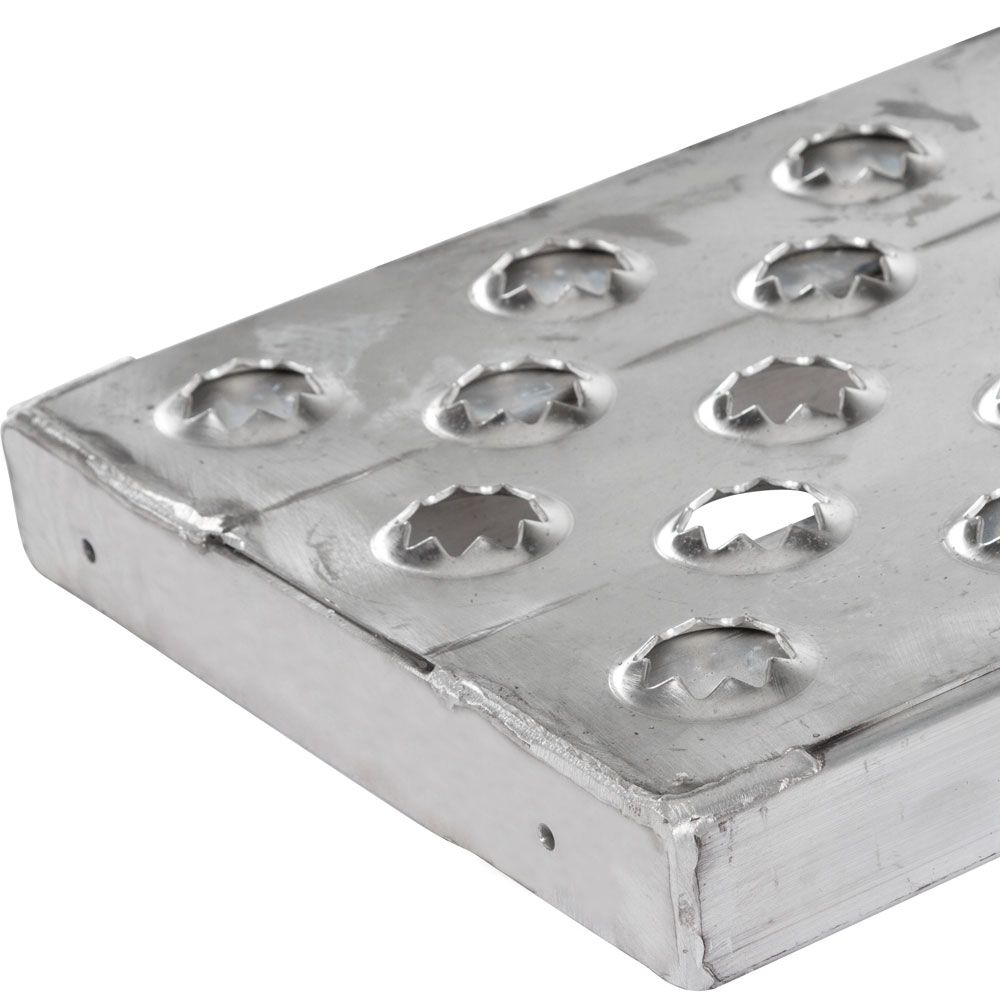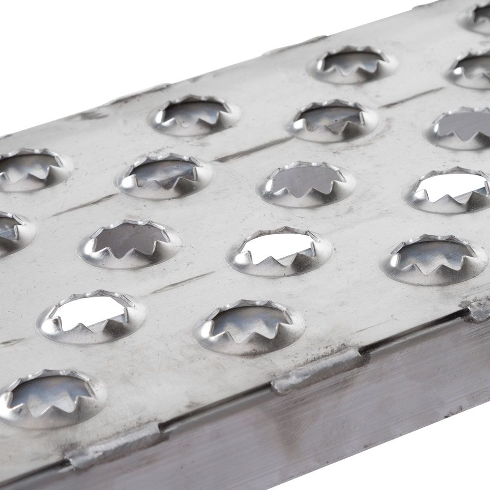 The unique punched surface features smoothed serrations that grip tires while allowing rain, mud and ice to pass through.