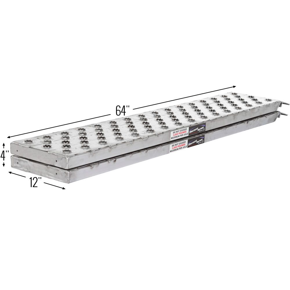5' L X 12" W HD Ramps EZ Traction Aluminum Car Trailer Ramp, Hook & Plate Hybrid End, Stub Foot - 3,000 lb. Per Axle