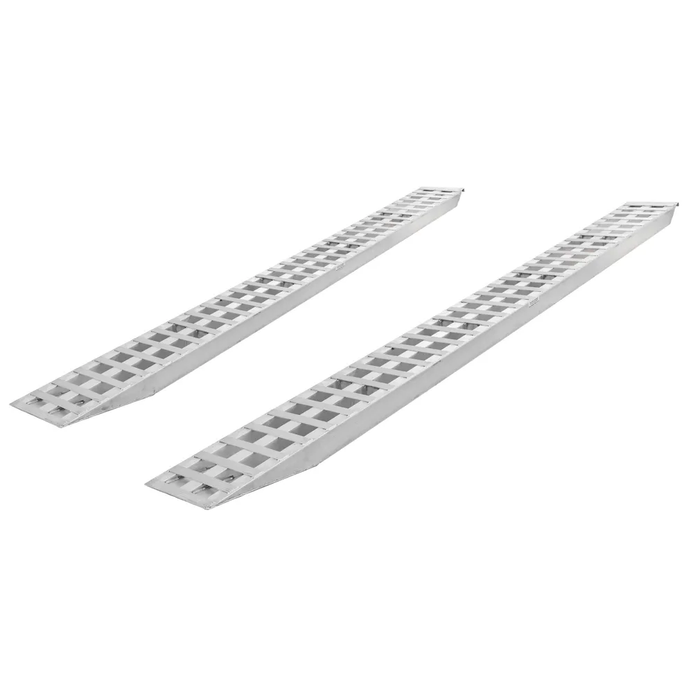 Load and haul cars, trucks and equipment onto trailers with this pair of lightweight 16' L aluminum truck trailer ramps that feature a hook end and a knife foot with serrated rung traction.