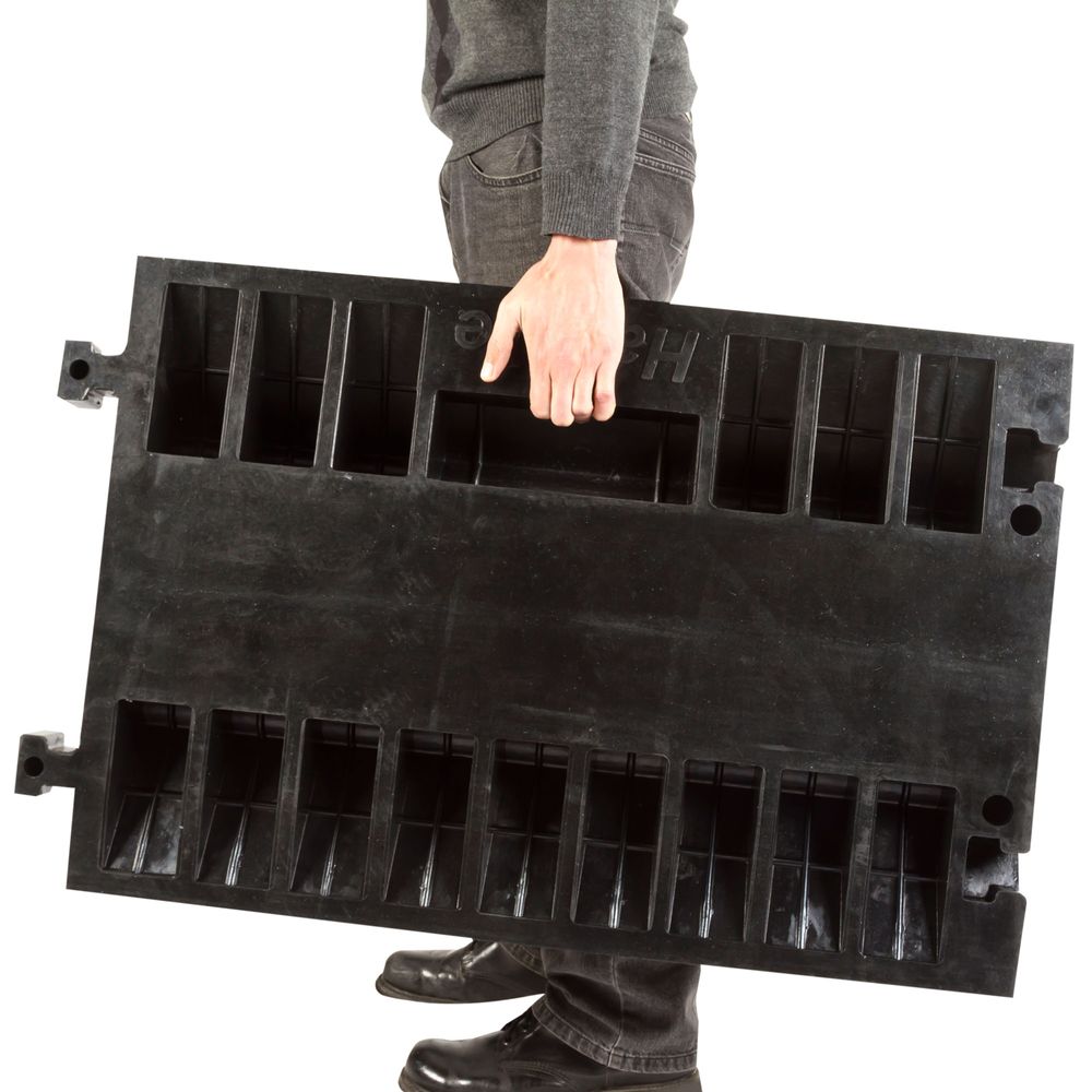 With a rubber base and PVC lid, this cable protector features a unique modular design with interlocking T-connectors which link multiple ramps together to cover long cable runs. Dual 3.75" W x 3.25" H channels are protected by a reinforced, hinged lid, designed to protect a variety of cables, hose lines, and wires up to 3.25" in outside diameter. The highly visible 10" wide lid includes Slip and Electrical safety warning symbols molded into the anti-slip, treaded surface.