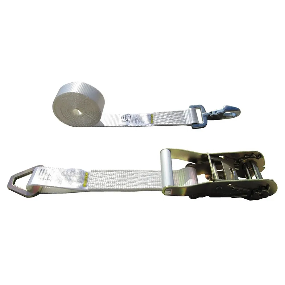 2" x 12' Tent Ratchet Strap, D-Ring and Forged Snap Hook - White