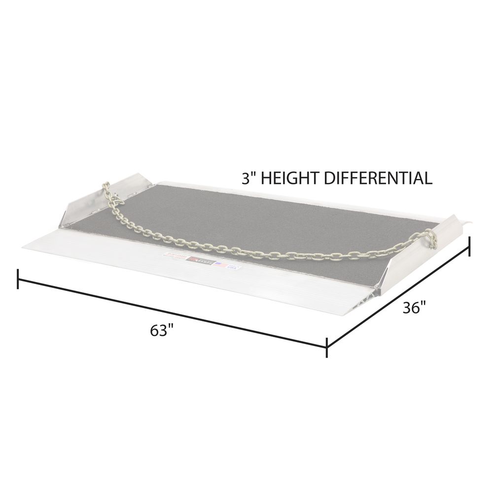 Loading operations will be safer and easier with the 36" L x 63" W HD Lightweight Aluminum Dock Board. The upgraded engineered supports to up 20,000 lbs. without adding weight.