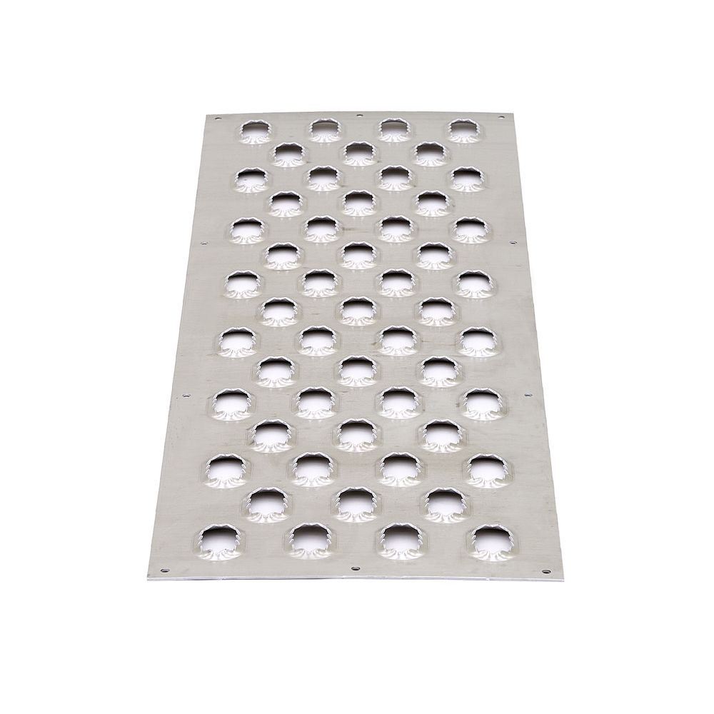 This aluminum tread features aggressive oval punch plate traction to grip tires and keep them moving. With six pre-punched holes, this HD Ramps Trailer Traction Tread is designed to be installed any surface where extra traction is required, such as enclosed trailers with fold-down ramp doors, open trailers, or wooden shed ramps.