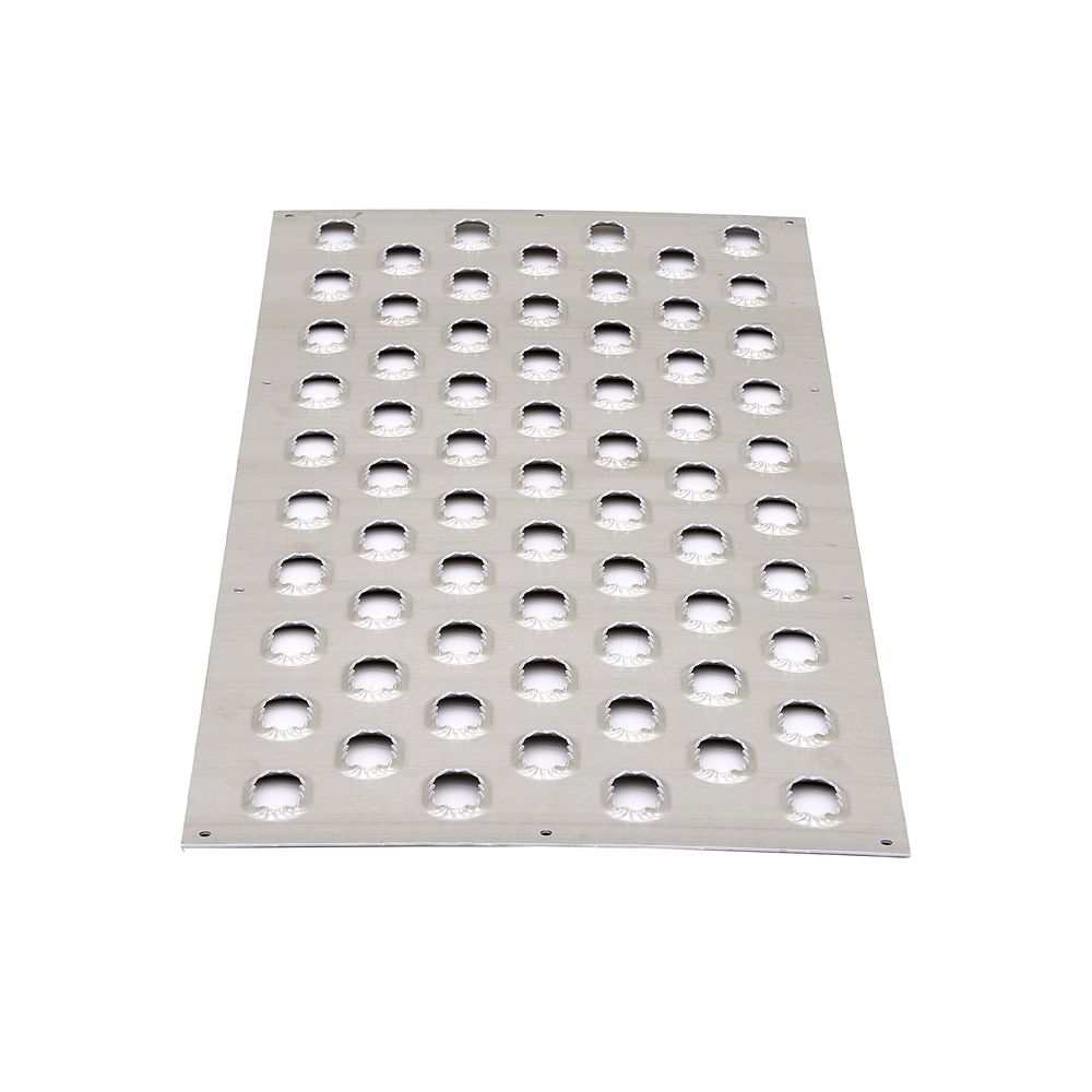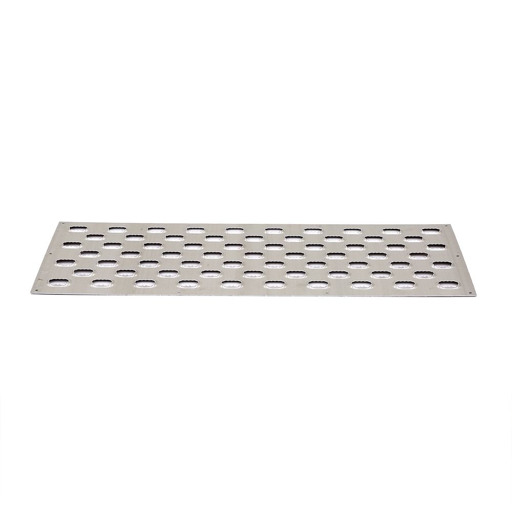 This aluminum tread features aggressive oval punch plate traction to grip tires and keep them moving. With six pre-punched holes, this HD Ramps Trailer Traction Tread is designed to be installed any surface where extra traction is required, such as enclosed trailers with fold-down ramp doors, open trailers, or wooden shed ramps.