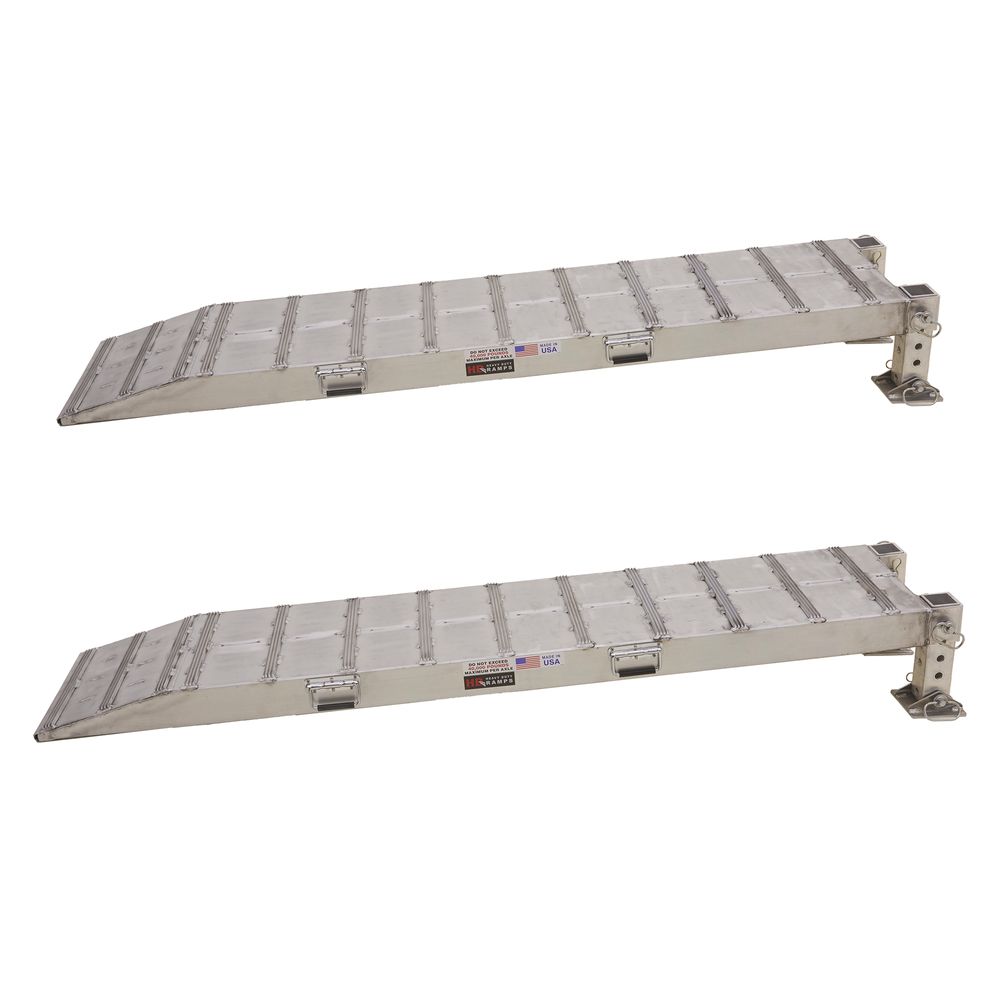 Manufactured from high-strength, lightweight aluminum, these 66" L wheel risers work with tandem axles, and are wide enough to accommodate 18" W single wheels. The adjustable height design allows you to set the height from 5" to 12" in order to properly level off a trailer when backing it up to a loading dock.