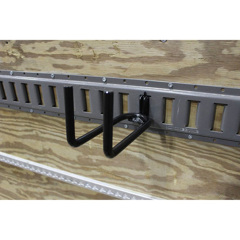 The E-track hook is a great accessory for any E-track installation. This hook is commonly called our E-track shovel hook because landscapers purchase the hook for hanging their rakes and shovels from it. You can also hang hoses or extension cords from it. The possibilities are limitless for this great E-track add-on.