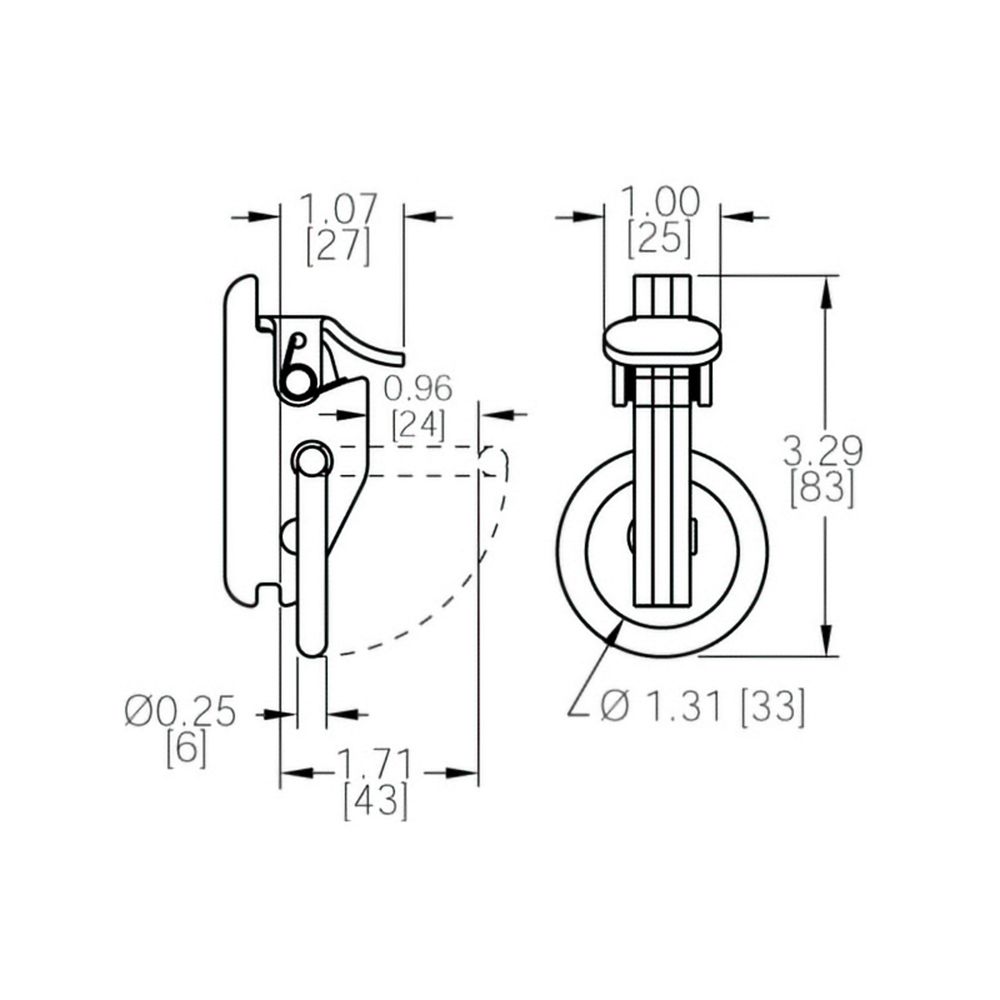 E-track fitting with round ring. Working load limit and break strength based on a 45 degree pull away from base.