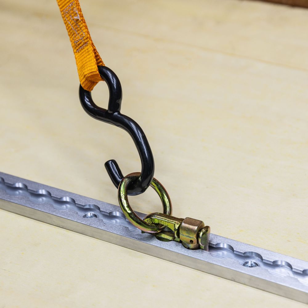 Our patented aluminum VersaTie track is designed to a 3,000 lb. Minimum Breaking Strength (MBS) in vertical pull and a 2,000 lb. MBS at 45°, giving you the capability to handle the heaviest load. There's an attach point every inch, so you can find the perfect anchor points to tame even the most unwieldy load.