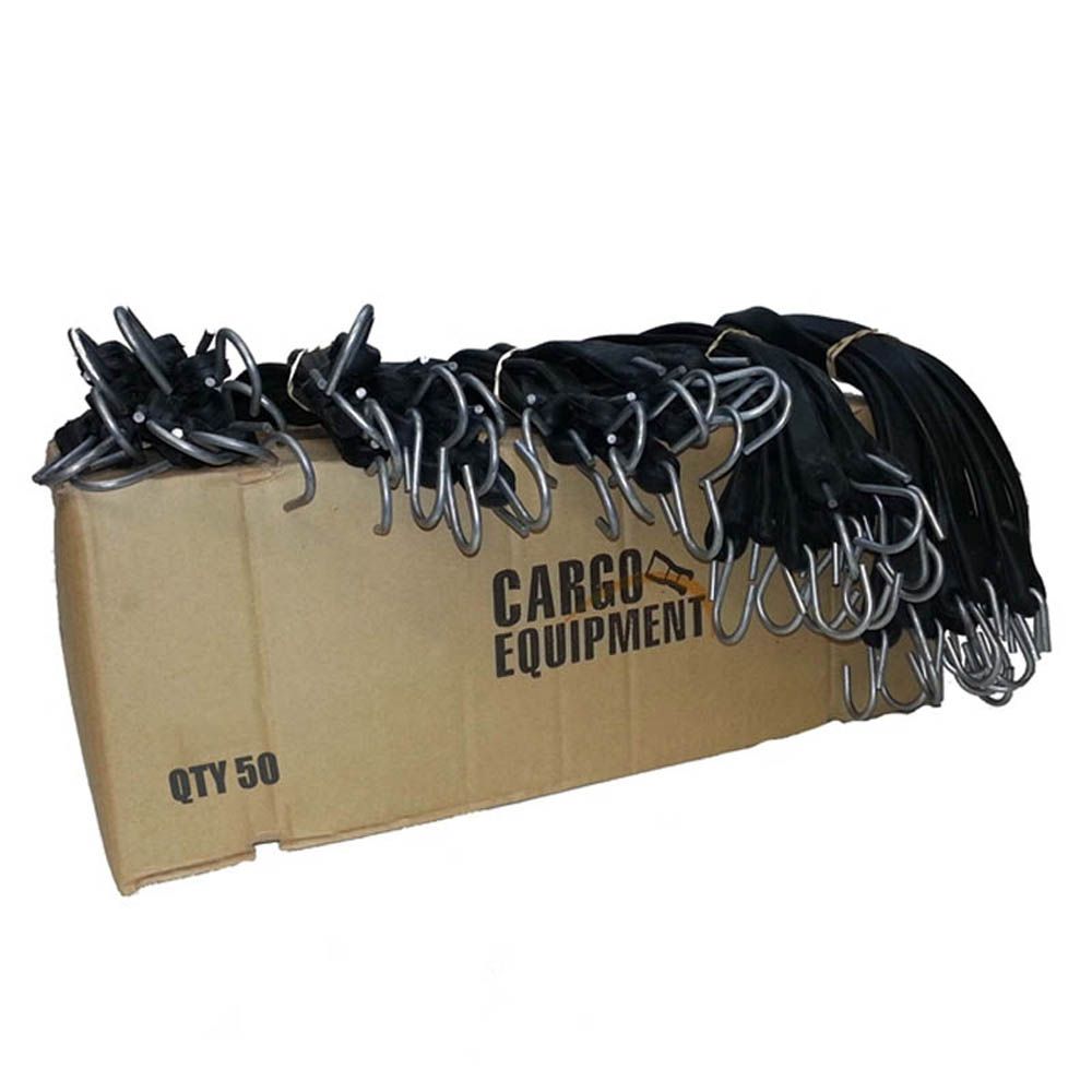 - (50) 21" natural rubber tarp ties with crimped hooks;