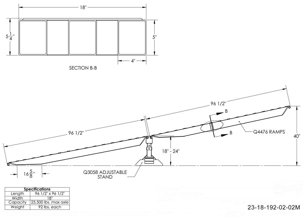 - Each 16' L side includes two 8' L ramps measuring 18" W and one ramp stand