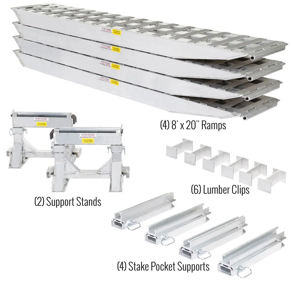 - This system includes: four 8' ramps, two support stands, six lumber clips and four stake pocket supports