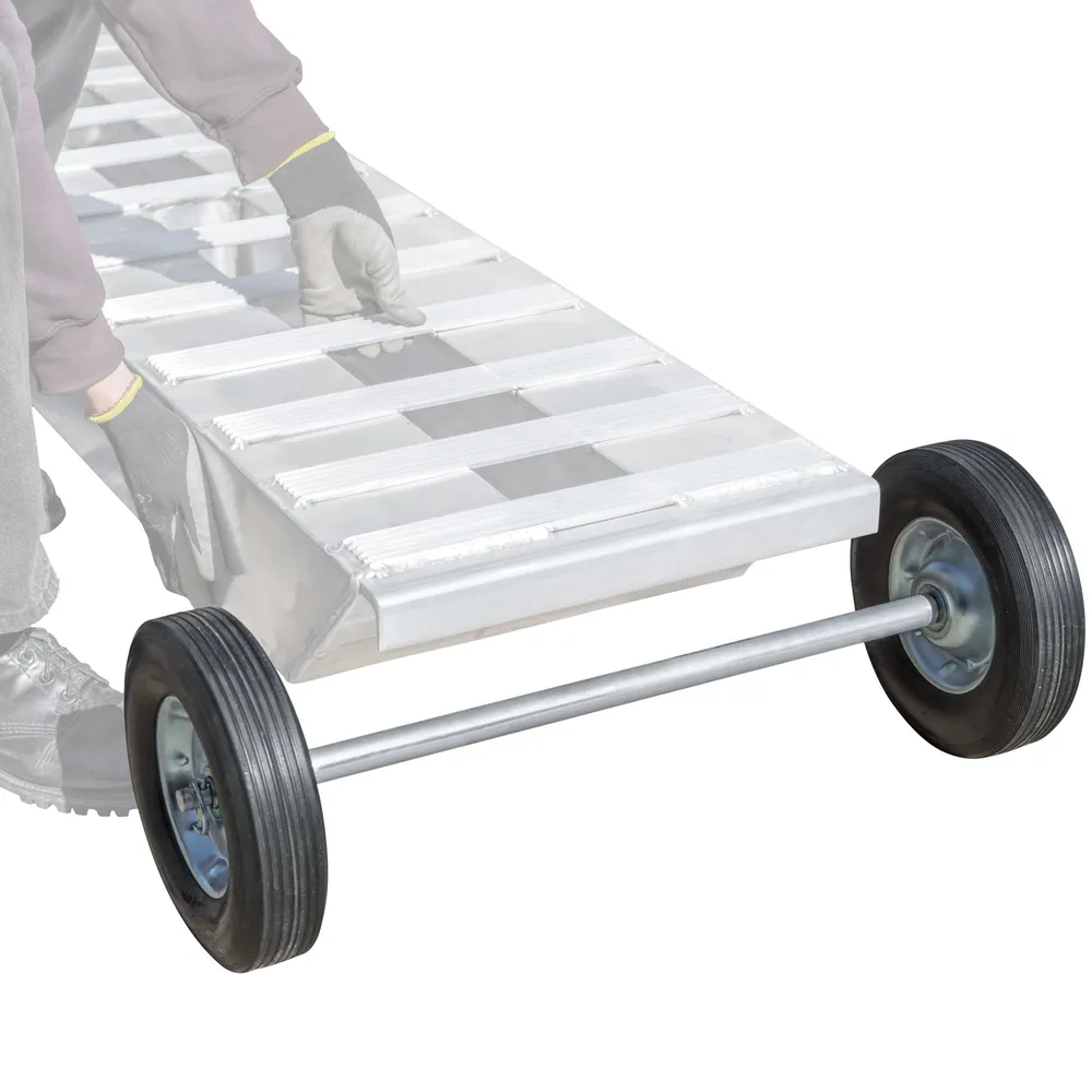 Featuring solid rubber tires with a 220 lb. weight capacity, simply rest your ramp or ramp system section atop the tough, rust-resistant aluminum bar, and you're ready to go! Installation is as easy as locking the tires onto the bar with the included hairpin cotters.