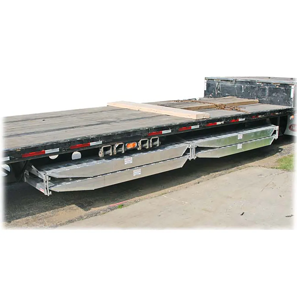 Store loading ramps below a truck trailer deck to save valuable space on a flat bed or step deck bed for hauling larger payloads.