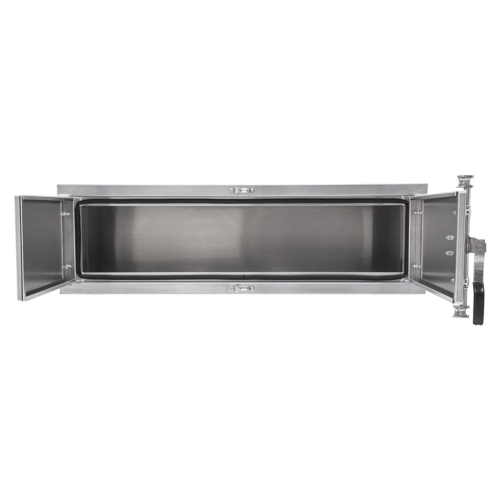 This 60" W x 18" D x 18" H tool box is ideal for holding straps and other equipment up to 400 lbs. when you're on the go, and is manufactured from 1/8" thick aluminum. A rubber weather seal around the inside of the door perimeter locks out moisture or grime.