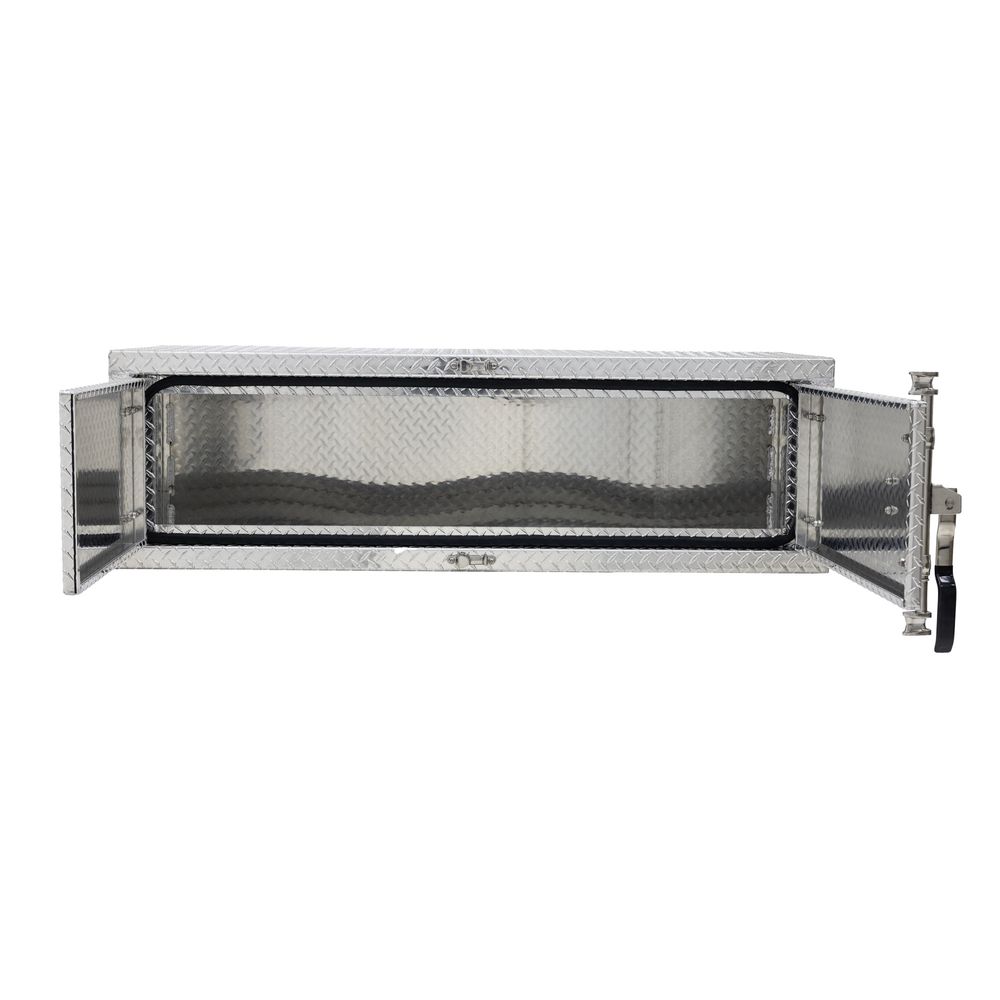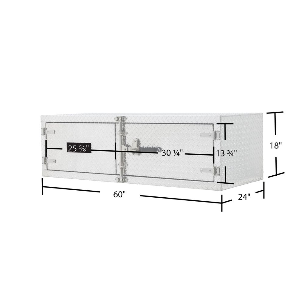 This 60" W x 24" D x 18" H toolbox is ideal for holding straps and other equipment up to 400 lbs. when you're on the go and is manufactured from 1/8" thick aluminum with diamond plate. A rubber weather seal around the inside of the door perimeter locks out moisture or grime.